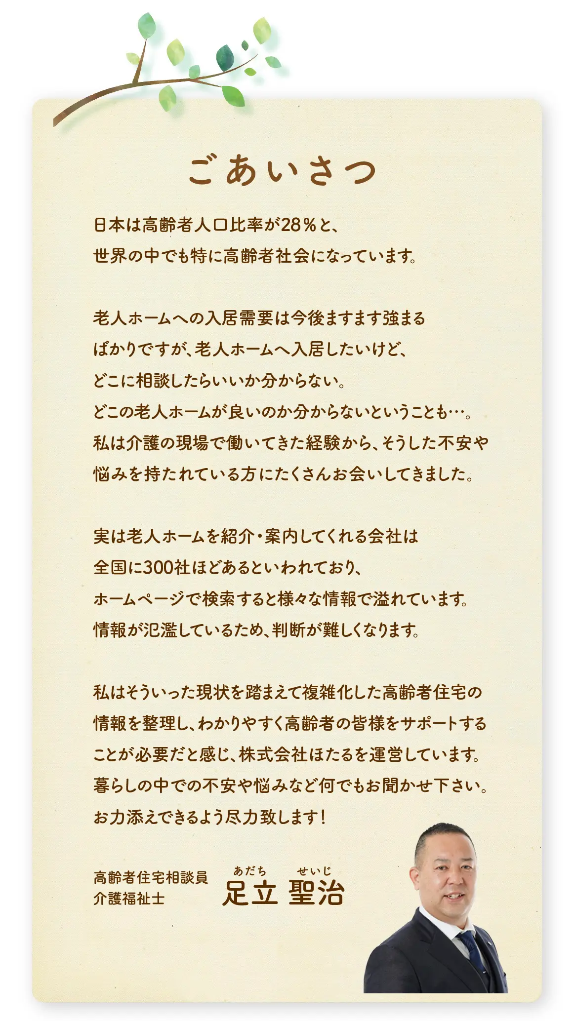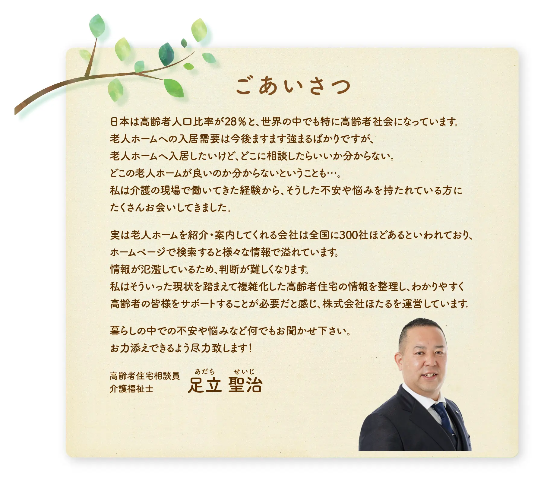 高齢者の皆様をしっかりとサポートいたします。